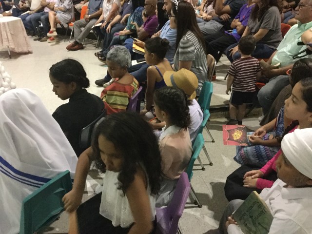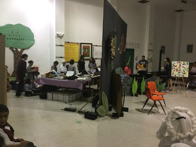 The first activity of the night was a living museum (students dressed like some historical people). After that they participated in a play. After the play, they had a music recital with flutes. You can see in these photos how packed was the music classroom were all these activities happened!: