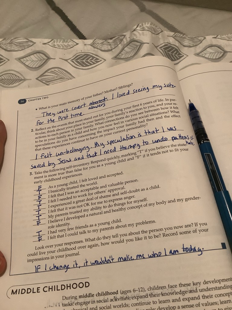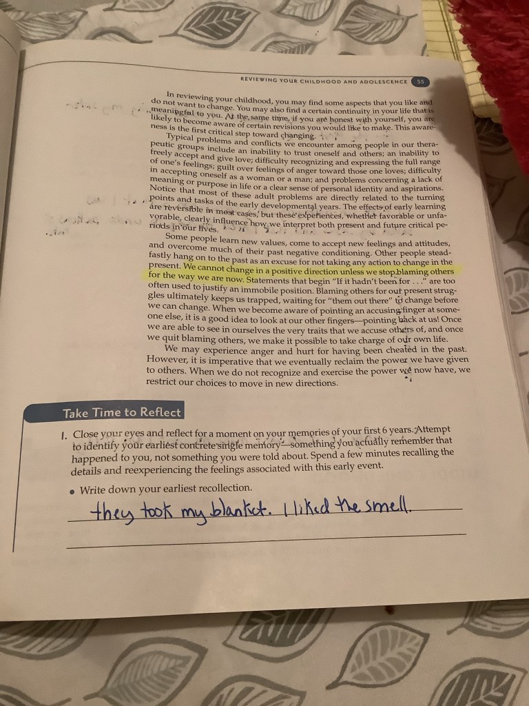 I am beginning Chapter 2 of I Never Knew I Had a Choice on March 13, expectting to complete it on March 14. The chapter is tittled “Reviewing Your Childhood and Adolescence”. This will be a rocky road: if something is sure is that both are filled with trauma, even if I myself wasn’t able to see it until relatively recently.