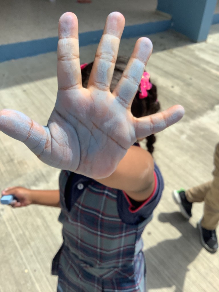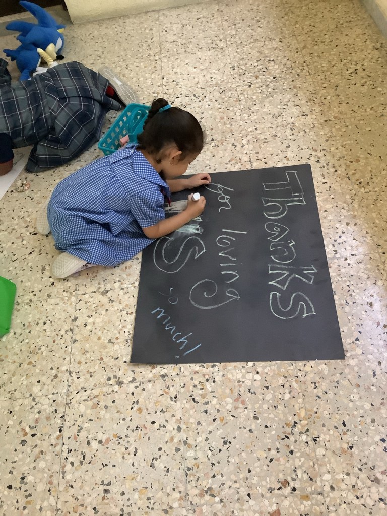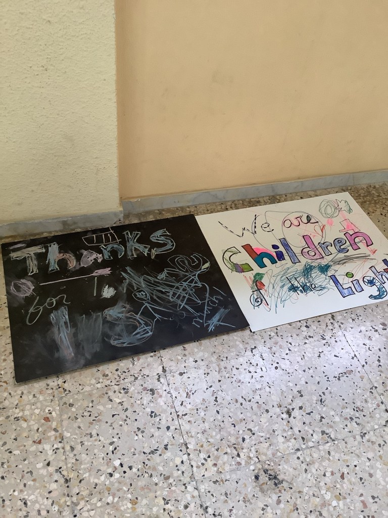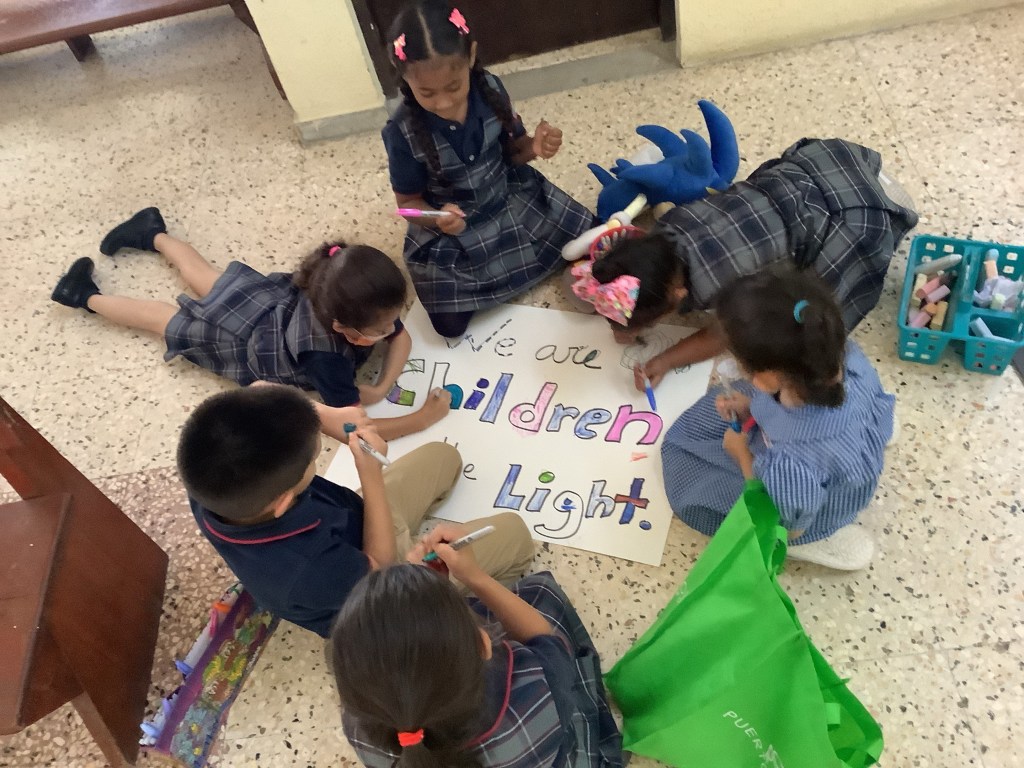 [Clarification note here: one of the quotes my students painted in the Sagrary was “We are children of the light”… but I got a reprimand from the principal of the school and the dean of discipline for letting those kids draw with chalk in front of the church, it was a very dark moment for me: I had to bring the students to the classroom, and some to the office, and while I was in the office there was a call from the “tribunal de Bayamón” (court of Bayamon) for other person, but as I heard that I remembered the horrible experience I had there, I was treated like I was no one, a zero in the left, in my own judicial case (another forced hospitalization by my progenitors) while my male progenitor, who was abusing me, got all the attention, and it was excellent attention, I wasen’t even spoken of my own case or given any paper or explained what happened… in brief words, I got flashbacks of that horrible time there. Yes, those students are children of the light, as you can see in these pictures, but what happened when I was with that group was not exactly luminous