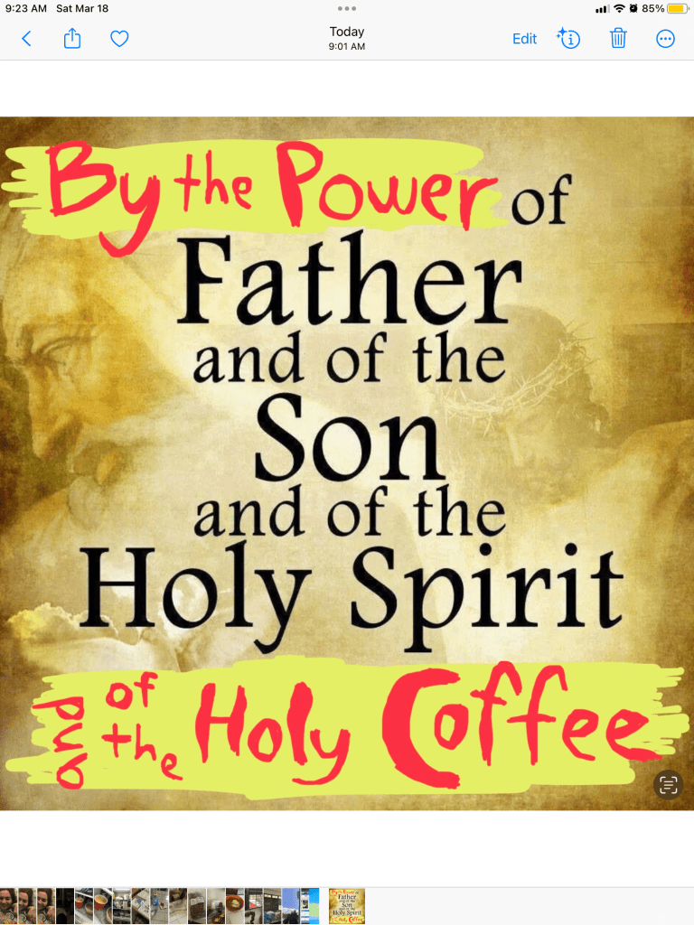 I absolutely laughed when I saw that cross, with a lot of good humor, like Mikhael and Jesus Charity have taught me. I repeated the words: by the power of the Father, and the Son, and the Holy Spirit… and the Holy Coffee 😂😂😂