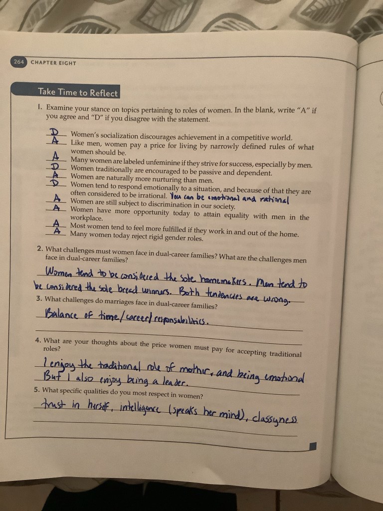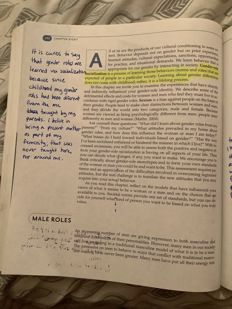 “Men and women are challenging traditional roles. Based on your own observations, to what extent do you find this to be true? Do your friends typically accept traditional roles, or they tend to challenge society’s expectations?” My fourth grade studenrs had a huge brawls on march 8 (womens day) because two boysof the group said that women were weak, unnneeed and only worthy because they could be at home and raise children. The fourh grade girls… well, almost kill the two boys, and they both had to apologize. What I mean is: our youth generation is clearly more conscious that traditional gender roles must be challenged, and it is happening, we are challenging the unhealthy roles. As I mentioned in a few of the comments, I have boy students that are quite emotional, I have boy students who have no problem touching each other (well, to fight with each other, but they do touch each other quite often 😂 without problems… and I also have a boy that is quite a hugger in fourth grade, and he is amazingly boyish, without problems with giving hugs) and if I teach to my boy students those masculine stereotypes be sure that I would be fired as teacher. Buth, as I explained earlier, gender roles don’t need to be bad and they will always be there, and its fine. Probably, besides a pediatrician, teachers are more conscious than any other career that boys and girls develop differently and have predominant skills which they develop easier than the other gender (read very carefully what I said: I said develop “easier”, that doesn’t mean that the other gender can’t develop them too). Gender differences are not an enemy. Its who we are as human being: female and male God created them. What is wrong is gender inequiality in the sense of giving more power to man or giving more power to woman. Both are called to grow in communion and fraternity. Don’t make the gender roles issue a sex war, because it shouldn’t be seen that way. They do need to change, the healthy way, not the “sex-war” way. We compliment each other by nature, and it should be that way also socially.
