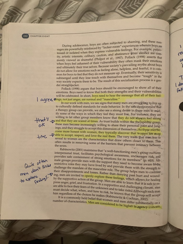 This is the end of chapter 7. I need to go to the bathroom and rest before starting chapter 8: becoming the woman or man you want to be.
