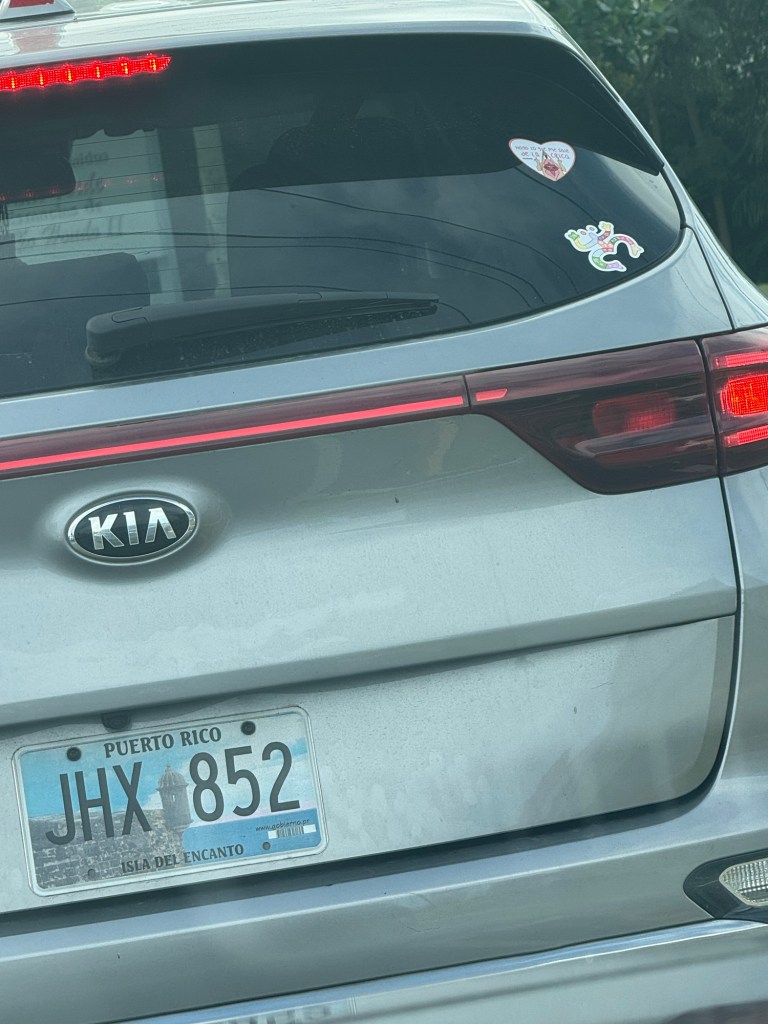 When I get put of the mall where Marshalls is (Rio Hondo) this car is in front of me. The taino stickers are also a social harrassment sign around me. I am not interested in read what the heart says.