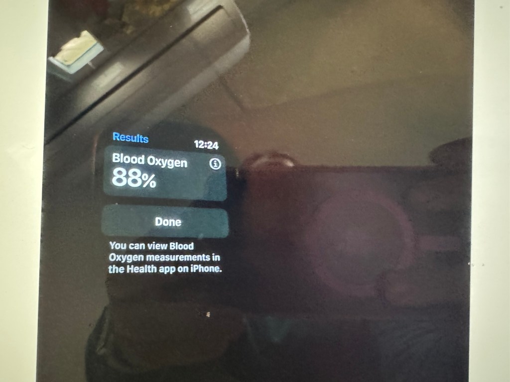 As I am finishing the day, I am being toxic gassed in the work, as you can see in the blood oxygen app of the Apple Watch. I made the blood oxygen test because I suddenly felt very high intensity heartburn with a little bit of drooling.